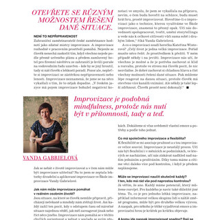 NEBOJTE SE IMPROVIZACEVanda Gabrielová12. 9. 2018Minut čtení: 107_Moje Psychologie_107_Moje Psychologie_307_Moje Psychologie_207_Moje Psychologie_4 Článek v magazínu Moje Psychologie ve spolupráci s Vanda Gabrielová.#ŠKOLAIMPROVIZACE #FIREMNÍIMPROVIZACE #improvizuj